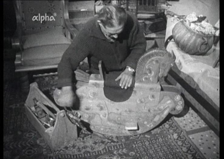 Das Weihnachtsfeature stellt 1962 die Frage: Was macht Weihnachten so schön? Vieles! Unter anderem die Geheimniskrämerei: Papa sattelt das Schaukelpferd.