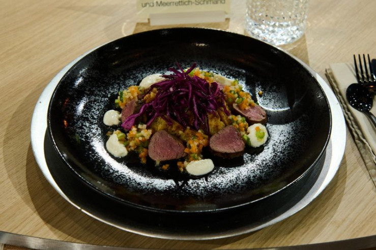 Tagesmotto: "Reste vom Feste": Gröstl von Semmelklößen und Rehrücken mit Rotkohlsalat, Gemüse-Vinaigrette und Meerrettich-Schmand von Thomas Martin