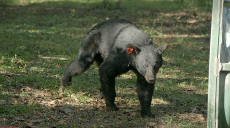 Eine Louisiana-Schwarzbärin ist gerade aus der Narkose erwacht.