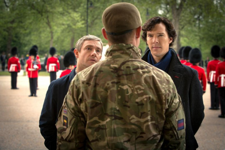 Sherlock Holmes (Benedict Cumberbatch, re.) will einem Leibgardisten der englischen Königin helfen, der von einem Unbekannten verfolgt wird.