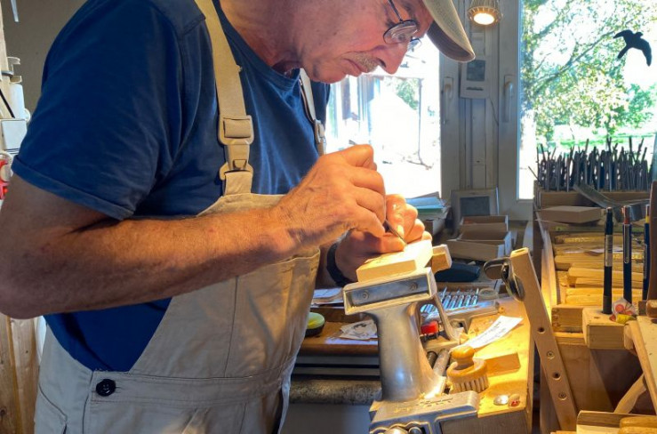 Leonhard Angele schnitzt Modeln - kunstvolle Plätzchenformen, mit denen man Bildgebäck herstellt. Seine Frau Waltraud macht die traditionellen Springerle dazu - Kekse aus einem komplizierten Teig, bei dem jede Zutat stimmen und jeder Handgriff sitzen müssen. Manche von Leonhards Modeln sind so aufwändig, dass er zwei Tage daran schnitzt. Manche sind so filigran, dass feinste Striche dargestellt werden, nur einen halben Millimeter breit. Das erfordert Geduld und Vorstellungsvermögen. Er stellt ein spiegelverkehrtes Negativ her: Beim fertigen Gebäck, in das das Motiv dann gedrückt wird, ist nachher alles anders herum. Dazu muss er eine spezielle Technik anwenden, damit der Teig wieder leicht aus der Form gleiten kann und nicht hängenbleibt. Für den Teig braucht Waltraud Angele drei Tage. Sie muss sich präzise an das Rezept halten, das Auswellen und Ausmodeln erfordern viel Feingefühl. Das Ergebnis lohnt sich: Die fertigen Springerle sind Kunstwerke, fast zu schade zum Essen.