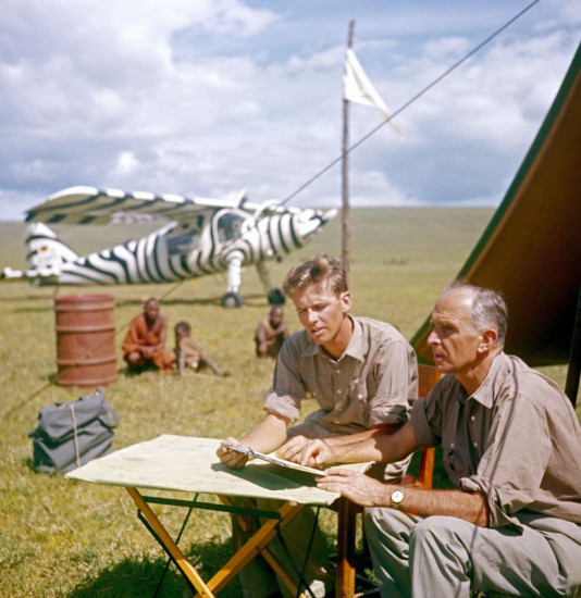 Bernhard Grzimek mit seinem Sohn Michael bei Dreharbeiten in der Serengeti für "Die Serengeti darf nicht sterben".