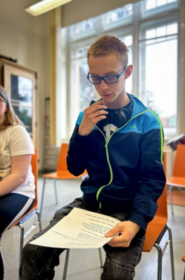 Paul lernt Text für den Auftritt beim Traumkonzert.