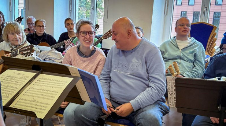 Sindy und Uwe üben beim Chor "Motus" für das Traumkonzert.