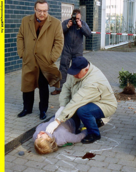 Christina Wengler (Birgit Hellwig) ist ermordet worden. Soviel kann der Gerichtsmediziner (Klausjürgen Steinmann) Hauptkommissar Schmücke (Jaecki Schwarz) schon sagen.