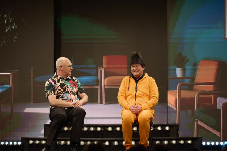 Das Wartezimmer ist immer ein Ort für nette Plaudereien. Von links: Martin Rassau und Volker Heißmann.
