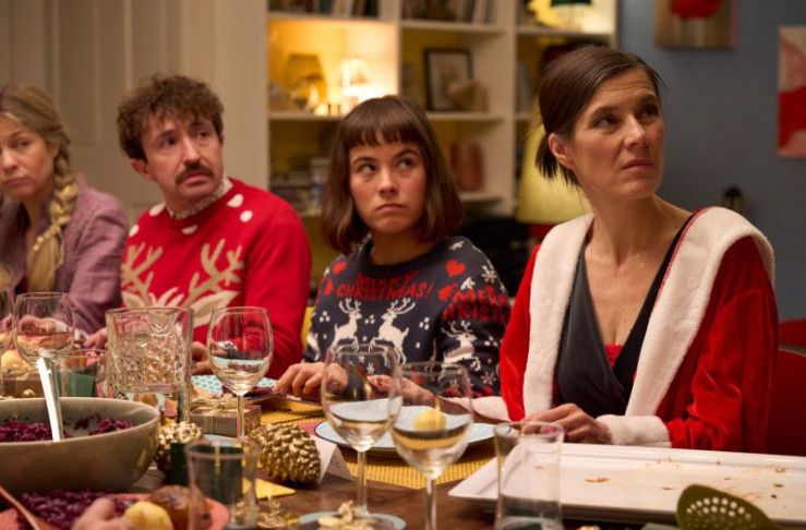 Peter (Michael Ostrowski) hat seine neue Freundin Ivana (Marina Lackovic, links) zum Weihnachtsessen mitgebracht. Klara (Anna Laimanee, rechts) beobachtet die beiden.