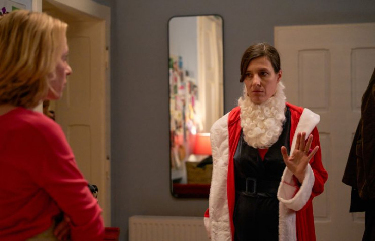 Von links: Die Feministin Wanda (Caroline Peters) freut sich, dass Elke (Pia Hierzegger) sich als Weihnachtsfrau verkleidet hat.