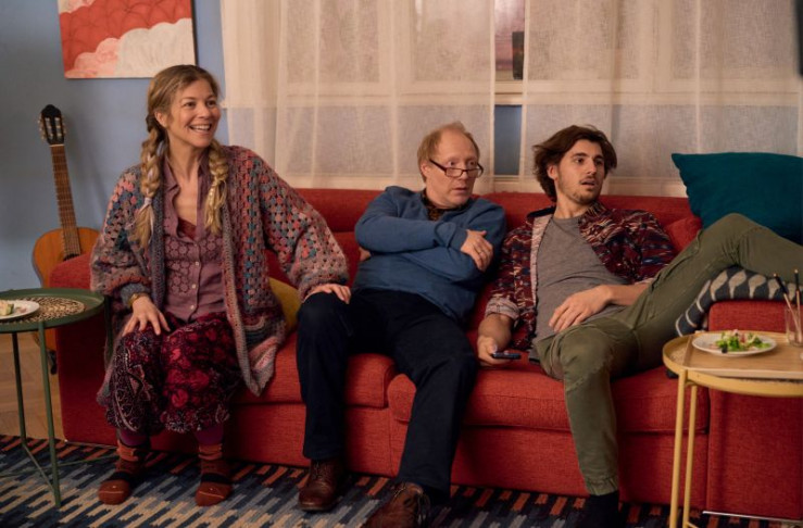 Von links: Peter (Michael Ostrowski), Ivana (Marina Lackovic) und Nina (Chantal Zitzenbacher) beäugen die vegane Kürbisgans skeptisch.