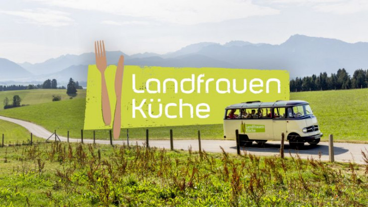 Key Visual/Cover Sendereihenbild mit Typo zu "Landfrauenküche". Sieben Frauen aus den sieben Bezirken Bayerns. Typische Rezepte, bayerische Schmankerl und eindringliche Geschichten.
