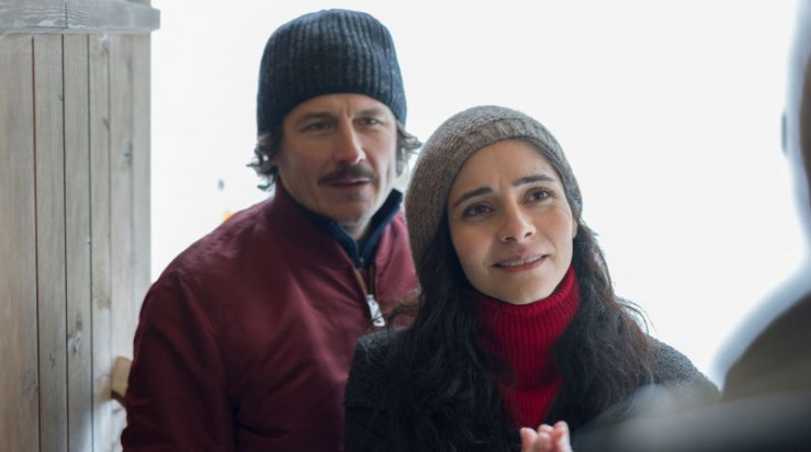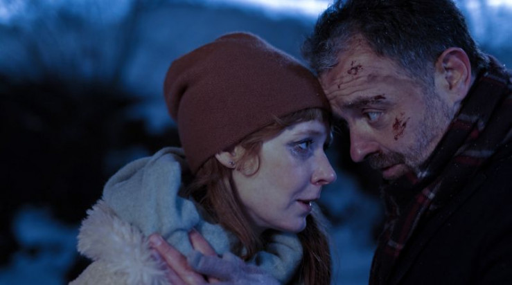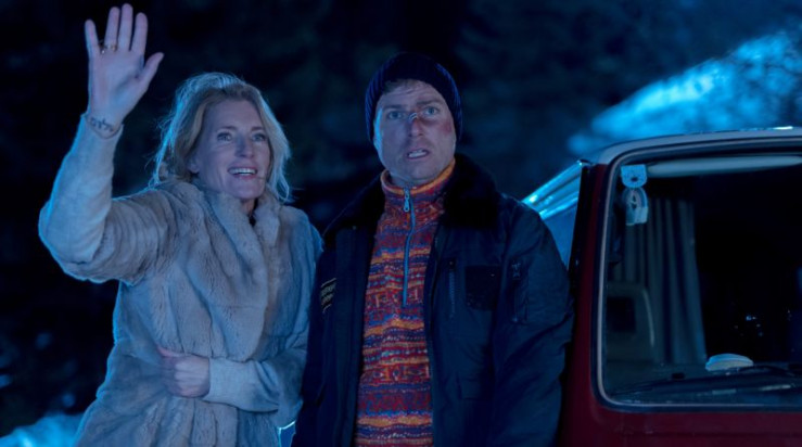 Jerry (Juergen Maurer, re.) ist gerade nochmal davongekommen: Dank seiner Frau Bea (Sarah Bauerett, Mitte) lässt ihn der Polizist (Jakob Egger, li.) frei.