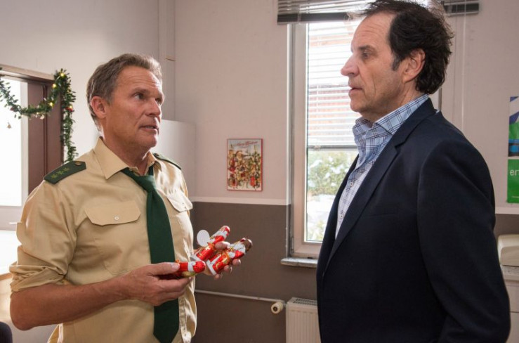 Staller (Helmfried von Lüttichau, r.) muss Hubert (Christian Tramitz, l.) eine wichtige Entscheidung mitteilen.
