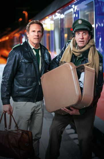 Hubert (Christian Tramitz, l.) begleitet Staller (Helmfried von Lüttichau, r.) zum Zug. Der bricht zu einem vorweihnachtlichen Shopping-Urlaub nach Rom auf.