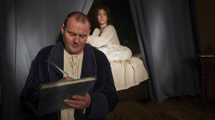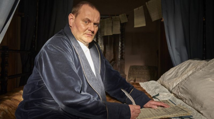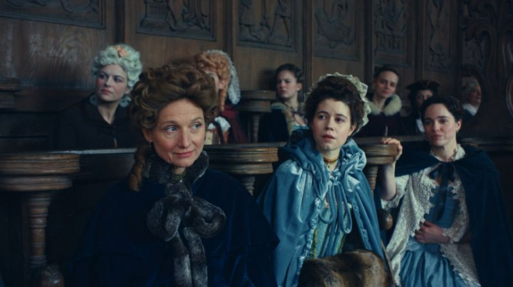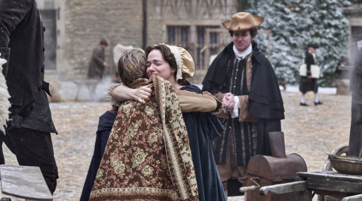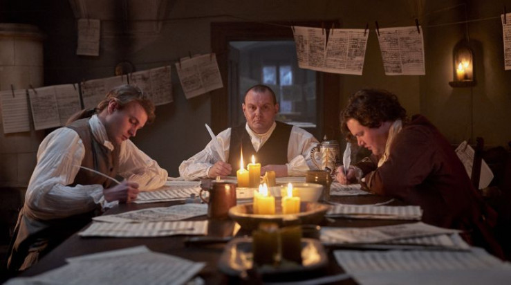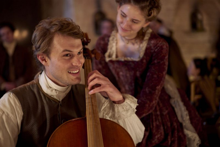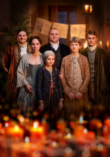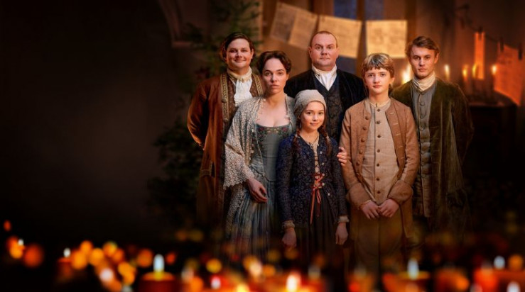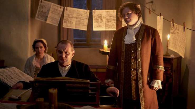 (v. li. n. re.): Dominik Marcus Singer (Friedemann), Verena Altenberger (Anna Magdalena), Lotta Herzog (Elisabeth), Devid Striesow (Johann Sebastian), German von Beug (Gottfried), Ludwig Simon (Emanuel).
