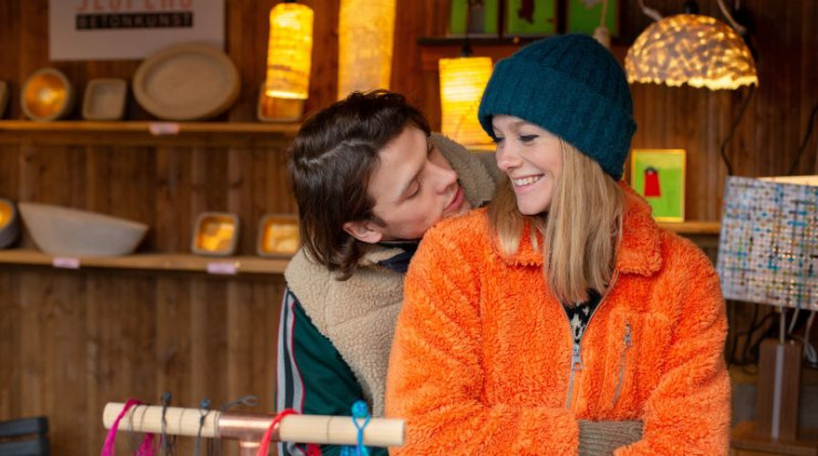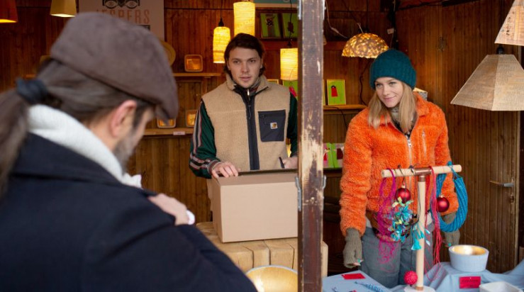 Leonie (Anna Unterberger, re.) und ihr Freund Jesper (Joshua Hupfauer) arbeiten auf dem Weihnachtsmarkt.
