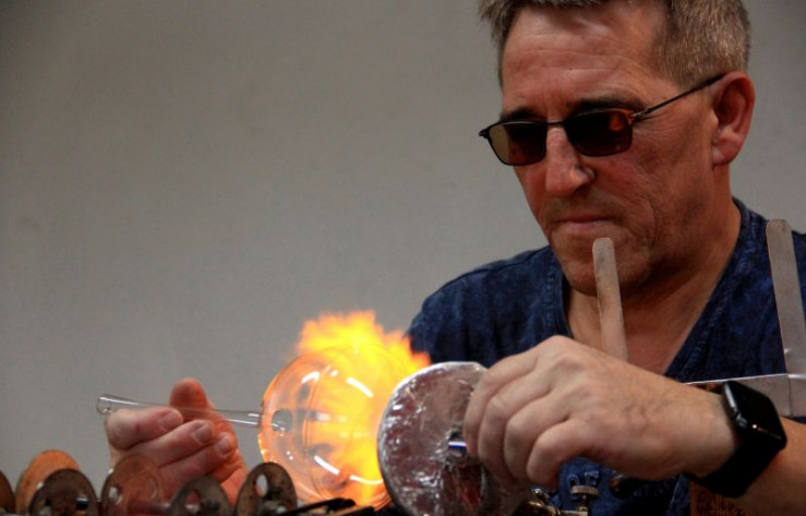 Aus einfachen gläsernen Röhren und Kolben entstehen in seiner Werkstatt dünnwandige Glocken, filigrane Weihnachtsmänner und - natürlich - traditionelle Christbaumkugeln.
