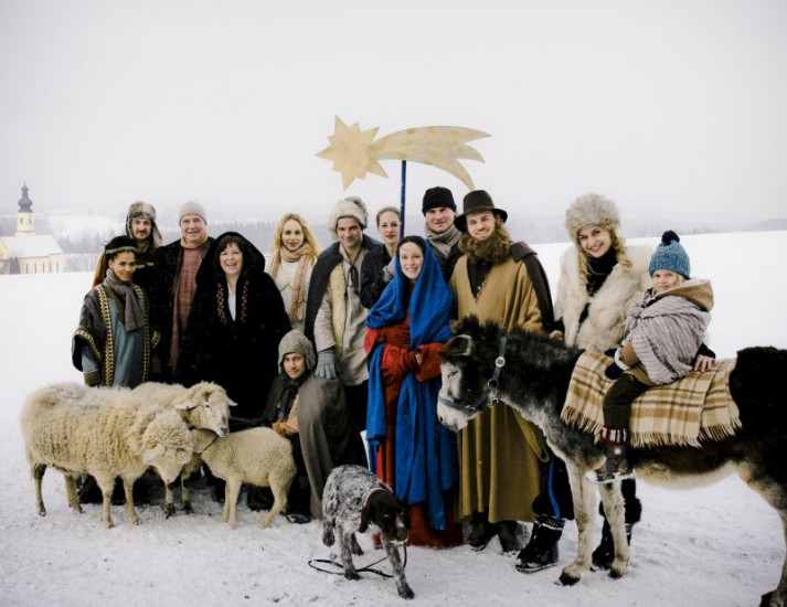 Anna (Sophie von Kessel, l.), Vince (Marc Hosemann, M.) und Ben (Misel Maticevic, r.) müssen sich an den Weihnachtstagen nicht nur mit der gesamten Familie auseinandersetzen, sondern auch noch ein Krippenspiel auf die Beine stellen.