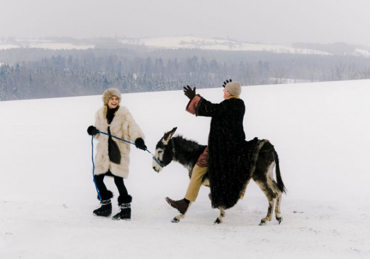 Dina (Franziska Schlattner) und Karl (Friedrich von Thun) haben Spaß mit dem Esel.