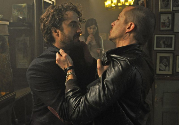 Der eifersüchtige Rocko (Barnaby Metschurat, re.) provoziert Matthias (Oliver Wnuk). Katharina (Anna Fischer) schaut entsetzt zu.