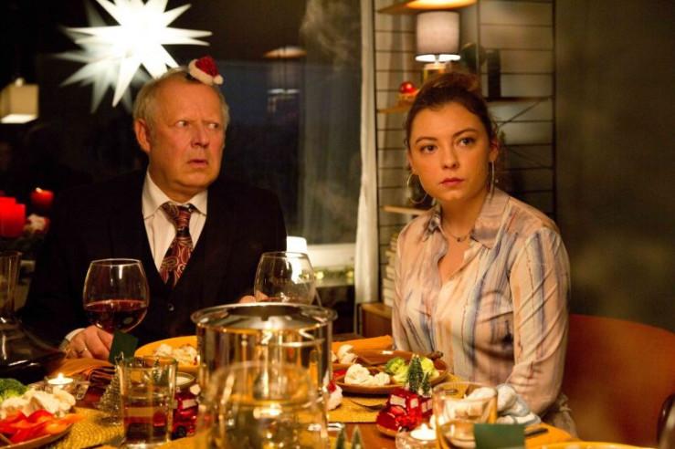 Gerald Bundschuh (Axel Milberg, l.) und seine Tochter (Amber Marie Bongard, r.) müssen zusehen, wie das festliche Adventsessen im Chaos versinkt.