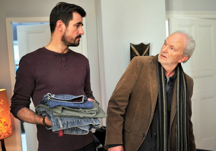 Robert Berger (Michael Gwisdek) ist nicht wirklich erfreut, Micha (Claes Kasper Bang, li.), dem neuen Freund seiner Ex-Frau, zu begegnen.