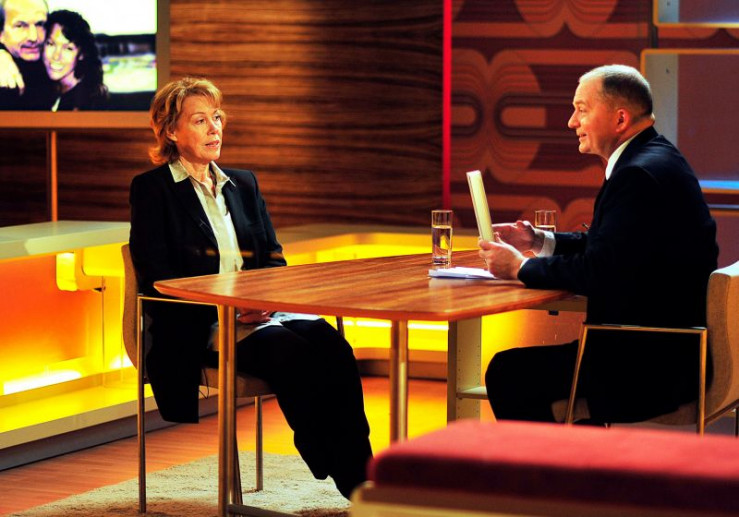 Elli (Gaby Dohm, li.) stellt bei Jörg Thadeusz ihr neues Buch vor.