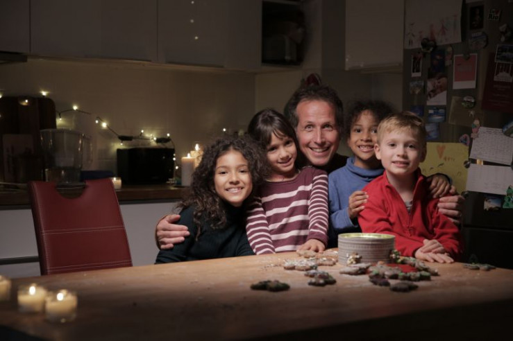 Willi mit Kindern und Weihnachtsplätzchen am Tisch.