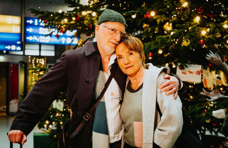 Flughafen-Weihnachtsmann Thorsten (Henning Baum) und seine Christkind-Kollegin (Xenia Tiling).