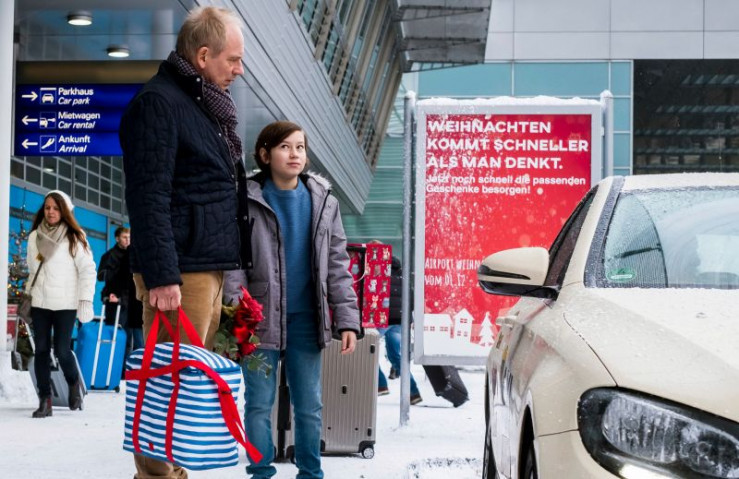 Das Flughafen-Christkind (Xenia Tiling) verbringt Heiligabend im Terminal.