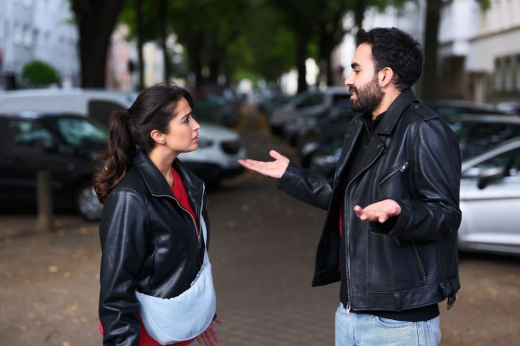 ACHTUNG SPERRFRIST! Die Veröffentlichung dieses Motives ist für alle ONLINE-MEDIEN (außer Programm-Presse) erst ab dem 25.11.2025 frei. Baris (Metehan Demiröz) stößt es sauer auf, wie Benedikt sich als Utes Retter aufschwingt. Links Esma (Özge Delioglan) +++ Die Verwendung des sendungsbezogenen Materials ist nur mit dem Hinweis und Verlinkung auf RTL+ gestattet. +++