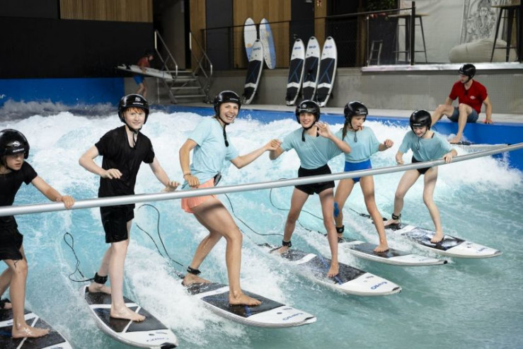 Die Kids beim Surfen