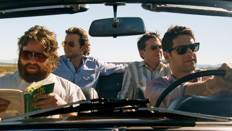 Alan (ZACH GALIFIANAKIS,li.), Phil (BRADLEY COOPER, 2.v.li.), Stu (ED HELMS) and Doug (JUSTIN BARTHA, re.) sind auf dem Weg nach Las Vegas