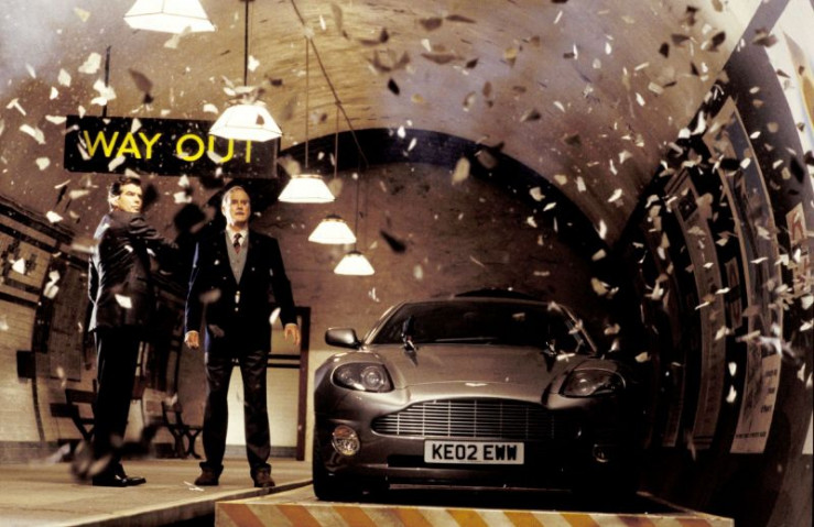 James Bond (Pierce Brosnan) und Q (John Cleese) vertiefen sich in die Gebrauchsanweisung zu Bonds neuem Aston Martin V-12 Vanquish.