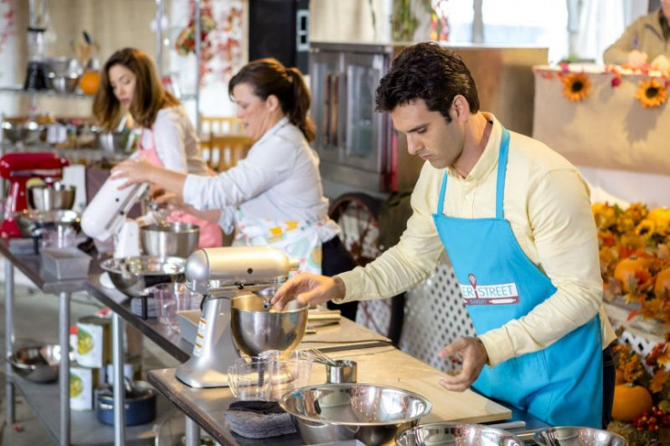 Casey (Julie Gonzalo) und Sam (Rico Aragon) treten in einem Kürbiskuchenwettbewerb gegeneinander an.