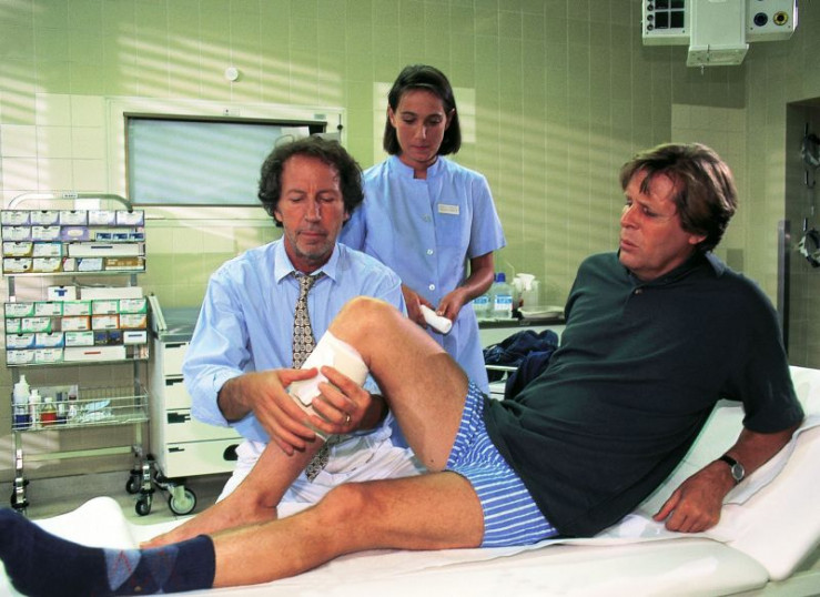 Weniger dramatisch verläuft die Einweihungsfeier des neuen Kliniktraktes. Zivi Julian lernt ein Mädchen namens Katja kennen, die Schwester von Dr. Bea Gerlach. Irene Kadenbach bietet dem jungen Mädchen einen Job als Aushilfssekretärin an - allerdings nicht ohne Hintergedanken. Sie weiß, dass Katja einmal drogenabhängig war und will Bea Gerlach damit unter Druck setzen. Bea ahnt nicht, was sich hinter ihrem Rücken zusammenbraut. Sie ist mit Dr. Stefan Frank zum Essen verabredet und freut sich auf die gemeinsamen Stunden. Doch der Abend endet in einer Katastrophe: Die Schutzgeldmafia überfällt das Restaurant. Einer der Gangster verliert die Nerven und schießt. Es kommt zu einem Handgemenge, bei dem Bea stürzt und mit voller Wucht in eine Glastür fällt. Die Scherben schneiden ihr tief ins Gesicht...