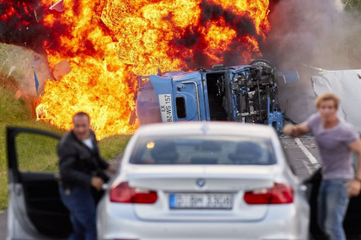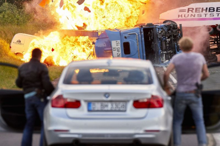 Semir (Erdogan Atalay, l.) und Paul (Daniel Roesner) werden Zeuge eines losbrechenden Infernos auf der Autobahn...