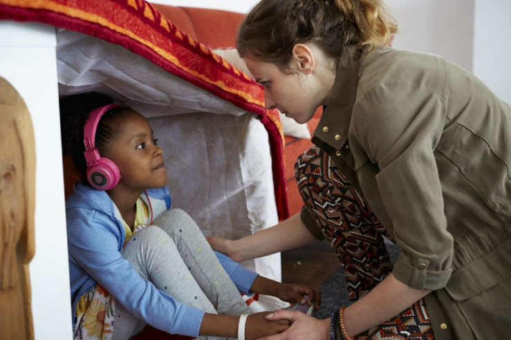Nina Bergmann (Karin Hanczewski, r.) will gerade mit Ihrer Tochter Miriam (Nomie Laine Tucker) fliehen, als sie ein Geräusch an der Haustür hört.