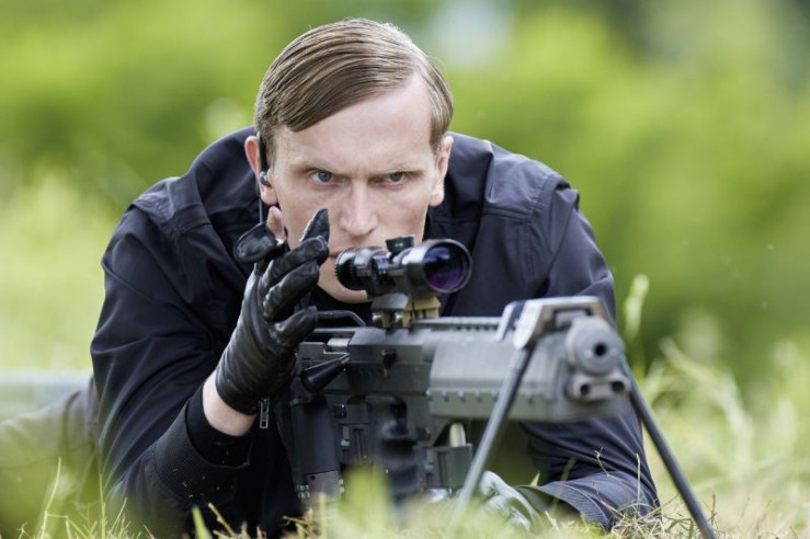 Scharfschütze Lars Kirkmann (Ulrich Brandhoff) nimmt ein Ziel auf der Autobahn ins Visier...