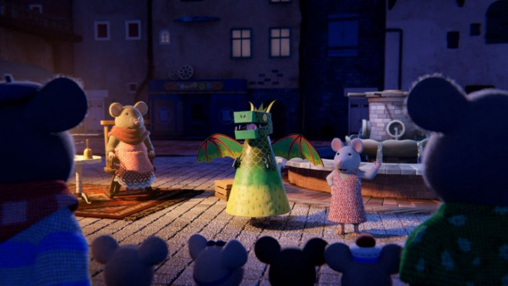 Sam (links) und Julia (rechts) sitzen mit anderen Hausbewohnern des Mäusehauses im Hof und lauschen den Geschichten von Oma Gouda. © ZDF/Cielo Films/Caribara Production/SuperswissRed/M.A.R.K.13/ZDF Studios GmbH - Honorarfreie Verwendung gemäß AGB im redaktionellen Zusammenhang mit genannter Sendung bei Nennung "Bild: ZDF/Cielo Films/Caribara Production/SuperswissRed/M.A.R.K.13/ZDF Studios GmbH" inklusive Social Media Einschließlich Social Media© ZDF/Cielo Films/Caribara Production/SuperswissRed/M.A.R.K.13/ZDF Studios GmbH - Honorarfreie Verwendung gemäß AGB im redaktionellen Zusammenhang mit genannter Sendung bei Nennung "Bild: ZDF/Cielo Films/Caribara Production/SuperswissRed/M.A.R.K.13/ZDF Studios GmbH" inklusive Social Media Einschließlich Social Media