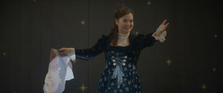 Josie (Yuki Sutton) performt mit der Zauberkraft von Theo und Darius und hat dabei Theo in ein Papierpüppchen verwandelt.