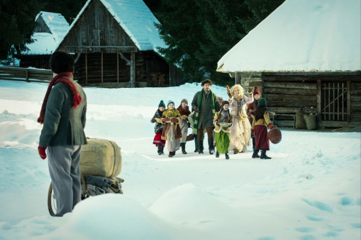 Tagesstern (Tereza Ramba, 3.v.r.) will VaĹĄek (VojtÄ?ch Kotek, M.) helfen und tanzt mit den Kindern durch das Dorf.
