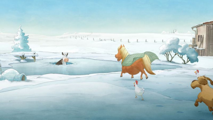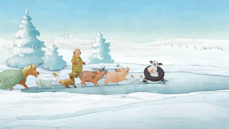 Der Winter ist da! Gefroren ist der See auf Lieselottes Bauernhof. Begeistert fahren Hund und Hühner Schlittschuh oder spielen Eisstockschießen. Und Lieselotte? Sie will mitspielen und betritt das Eis. Unter ihren Hufen knirscht es verdächtig. Die Tiere schicken sie von der Eisfläche. Lieselotte schliddert missmutig auf einer zugefrorenen Pfütze. Als die Tiere zum Tee trinken den See verlassen, sieht sie ihre Chance.