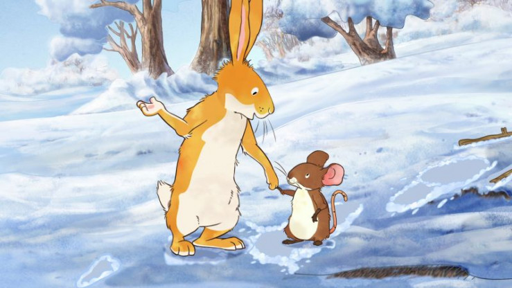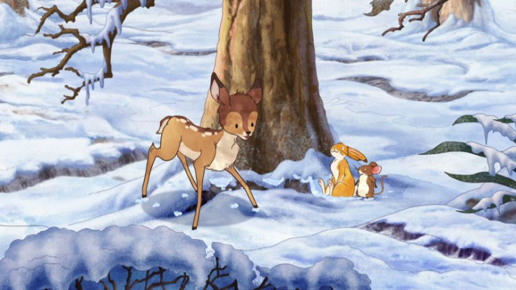 An diesem Tag entdeckt der kleine braune Hase ungewöhnliche Spuren im Schnee. Der große braune Hase erklärt ihm, dass sie von einem Rehkitz stammen. Es lugt auch kurz hinter einem Baum hervor, aber es verschwindet sofort wieder. Kleine braune Rehe sind nämlich sehr scheu. Der kleine braune Hase hätte gerne einen neuen Freund, denn es vermisst seine Freunde, die den Winter in wärmeren Gefilden verbringen oder verschlafen. Der große braune Hase erklärt ihm, dass er das scheue kleine Reh kennenlernen könnte, wenn er sich ihm vorsichtig nähert und sein Vertrauen gewinnt. Gemeinsam mit der kleinen Feldmaus macht sich der kleine braune Hase auf die Suche nach dem kleinen Reh.