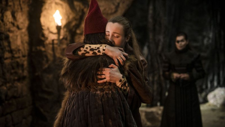 Tinka trifft Flora (beide Josephine Chavarria Højbjerg) in der Trollgruft wieder.