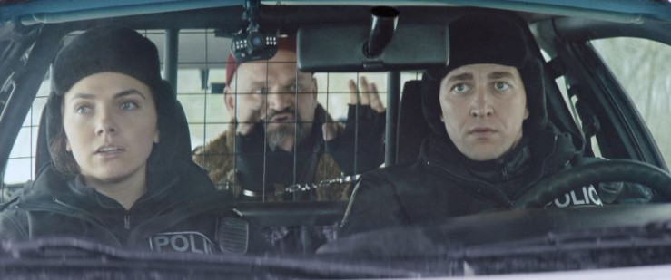 Die Polizisten Zlata und Yurko haben den berüchtigten Einbrecher Kaban festgenommen (von li nach re: Tetiana Lavrishko, Vasyl Virastiuk, Viacheslav Rak).
