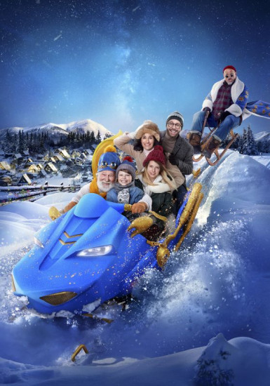 Artem, Polya und ihre Eltern feiern den glücklichen Ausgang ihres Abenteuers (von li nach re: Miara Efrosinina, Ivanna Borodai, Maksym Luchal, Przemyslaw Cyprianski).