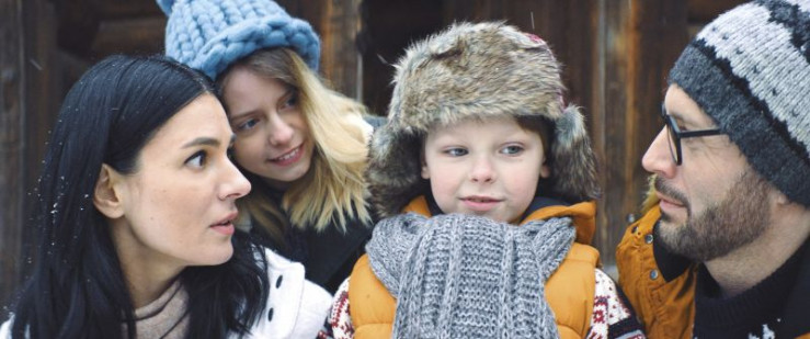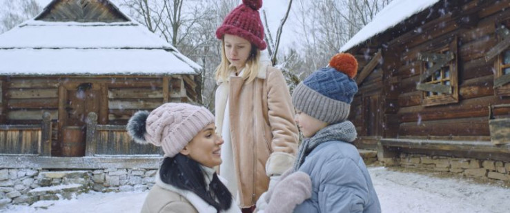 Polja, Artem und ihre Mutter sind wenig begeistert von dem Haus, in dem sie ihren Weihnachtsurlaub verbringen sollen (von li nach re: Ivanna Borodai, Maksym Luchak, Maria Efrosinina).