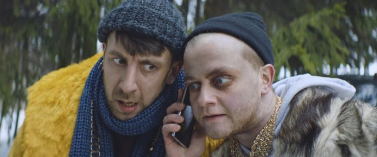 Die beiden Ganoven Drisch und Rostig erhalten Anweisungen von Kaban (von li nach re: Andrii Kronhlevskyi, Vitalii Azhnov).