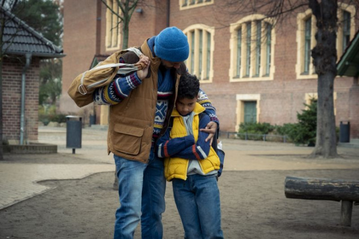 Paule (Sanusi Bah) ist enttäuscht und weint, sein Vater (Tyron Ricketts) tröstet ihn.