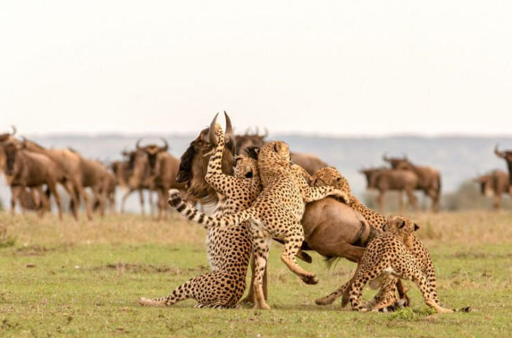 Voll ausgewachsene Gnus werden von Gepardenweibchen nicht angegriffen, weil ihnen für diese schweren Beutetiere die Kraft fehlt.